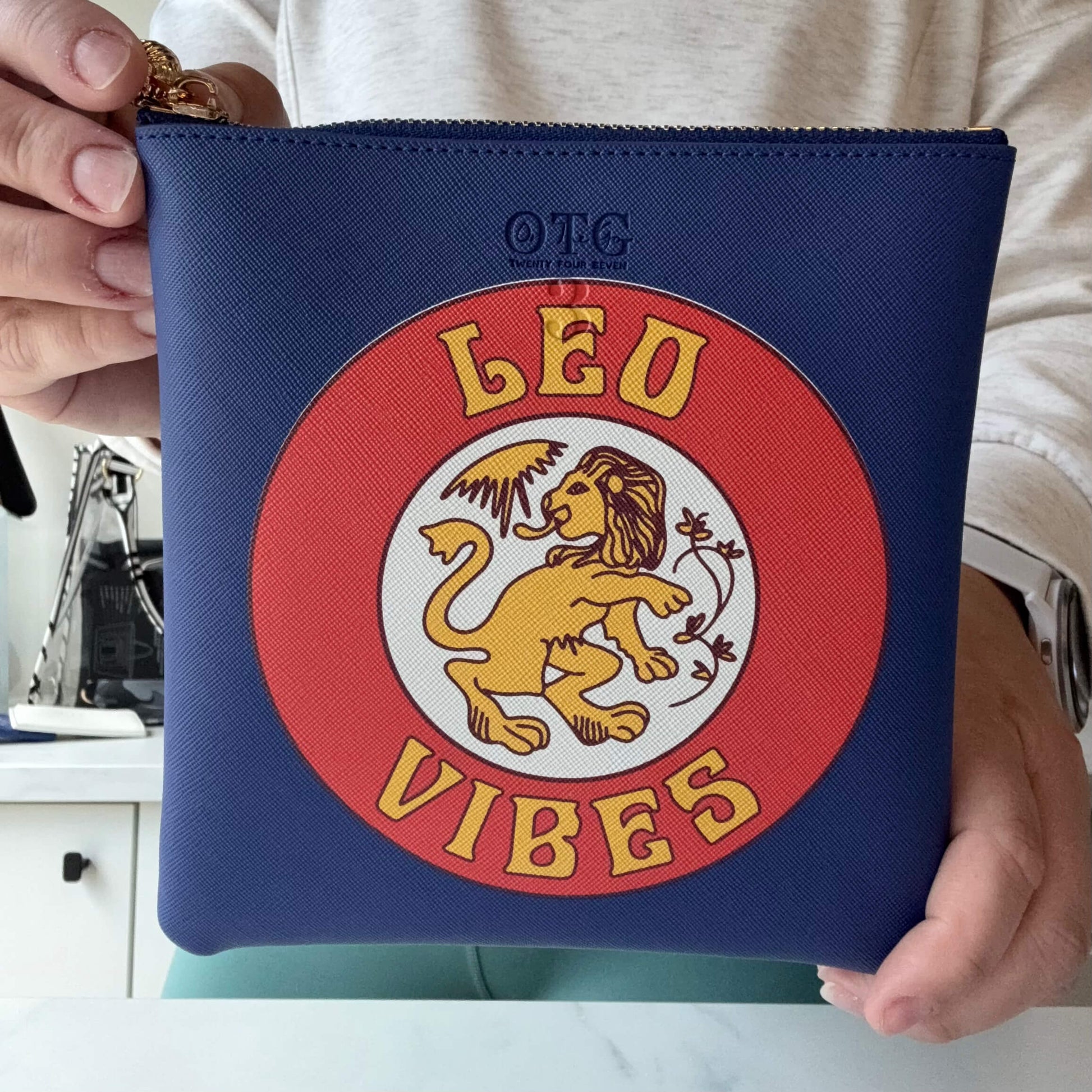 Size #3 Navy Leo is the ideal solution for keeping your larger bag clutter-free and organized. This versatile pouch stores personal items, beauty essentials, receipts, and all those random finds that usually get lost in your handbag.