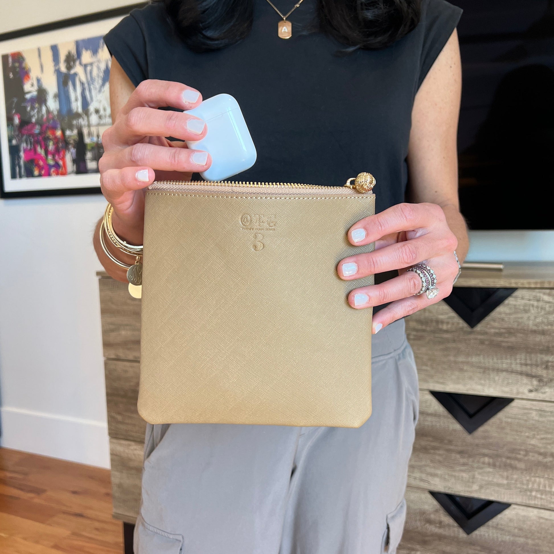 Size #3 Tan is the ideal solution for keeping your larger bag clutter-free and organized. This versatile pouch stores personal items, beauty essentials, receipts, and all those random finds that usually get lost in your handbag.