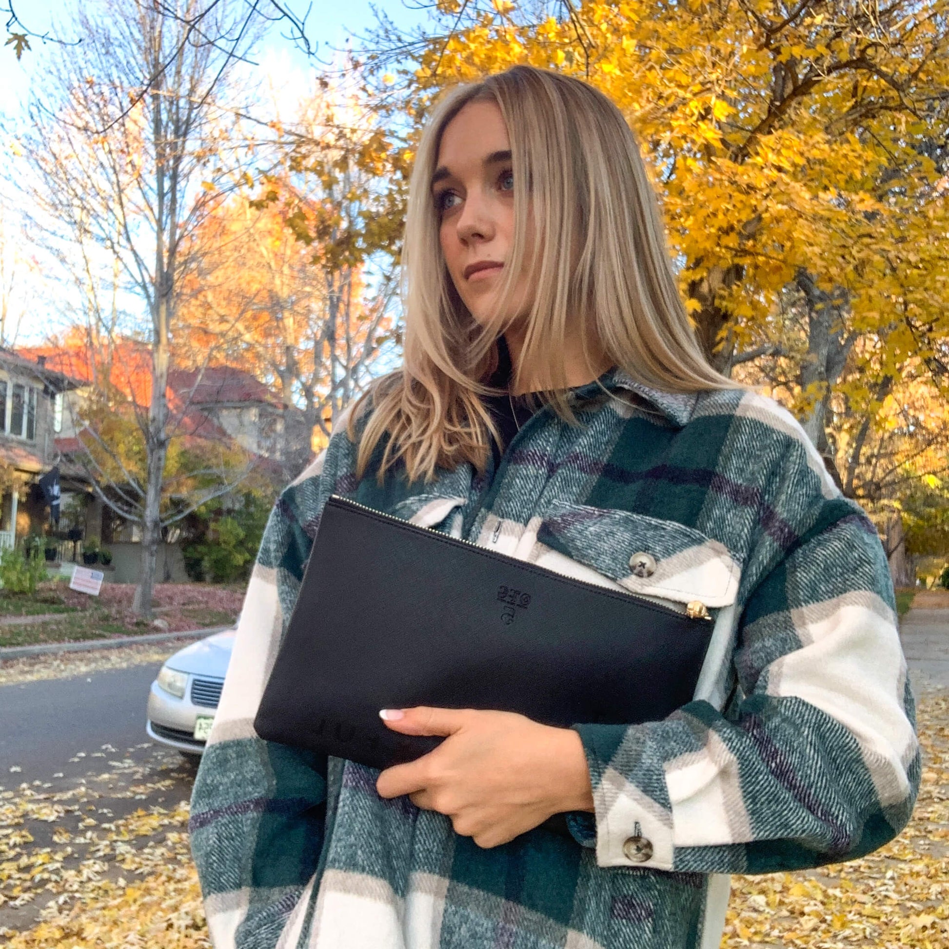 Size #5 Black is the perfect versatile accessory for keeping your essentials easy to access while making a chic fashion statement. This spacious pouch seamlessly transitions from organization to style.