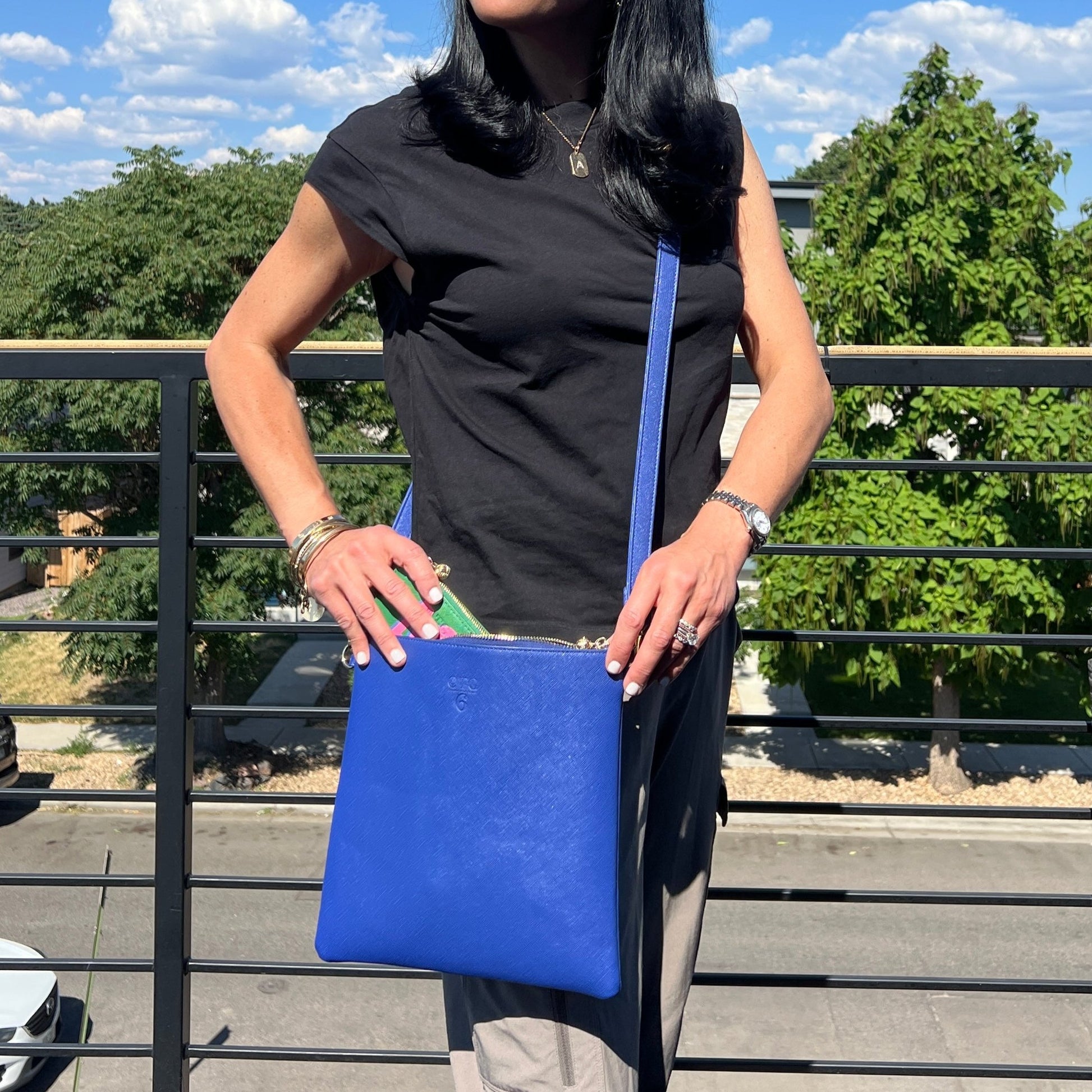 Size #6 Navy is the perfect versatile bag that transitions from tote organizer to crossbody in seconds. This chic and practical bag comes with a 48" removable crossbody strap, allowing you to grab it from your tote, add the strap, and wear crossbody style to suit your needs.